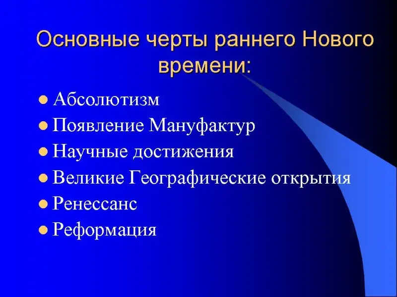 Основные черты раннего Нового времени:
