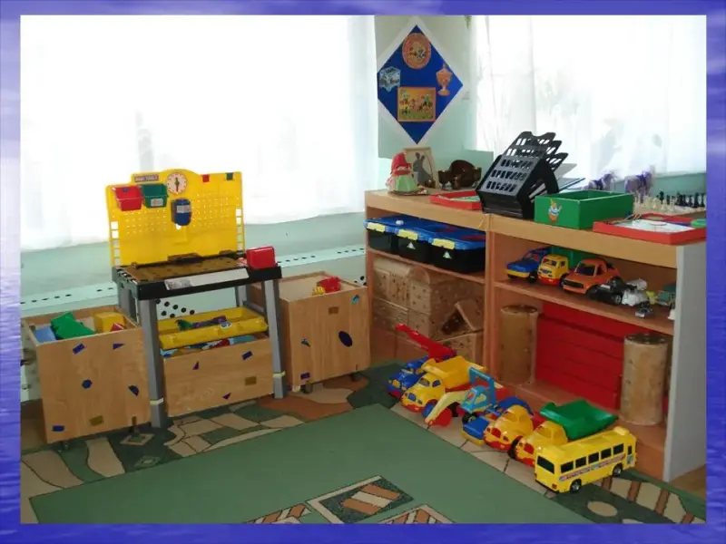 Принцип учета половых и возрастных различий реализуется следующим образом: предметно-развивающая среда группы меняется в зависимости от полоролевых предпочтений детей и периода их обучения. Если в группе больше мальчиков, то мы оборудуем группу конструкторами, кубиками, машинами, что позволяет детям строить дома, мосты, арки, гаражи не только на столе, но и на полу. Если девочек больше, чем мальчиков, то чаще разворачиваем игры в "семью", "больницу", "магазин", выделяем для этого большую часть группы. Важно помнить, что ребенок не пребывает в среде, а преодолевает, "перерастает" ее, постоянно меняется, а значит, меняется в его восприятии и его окружение.