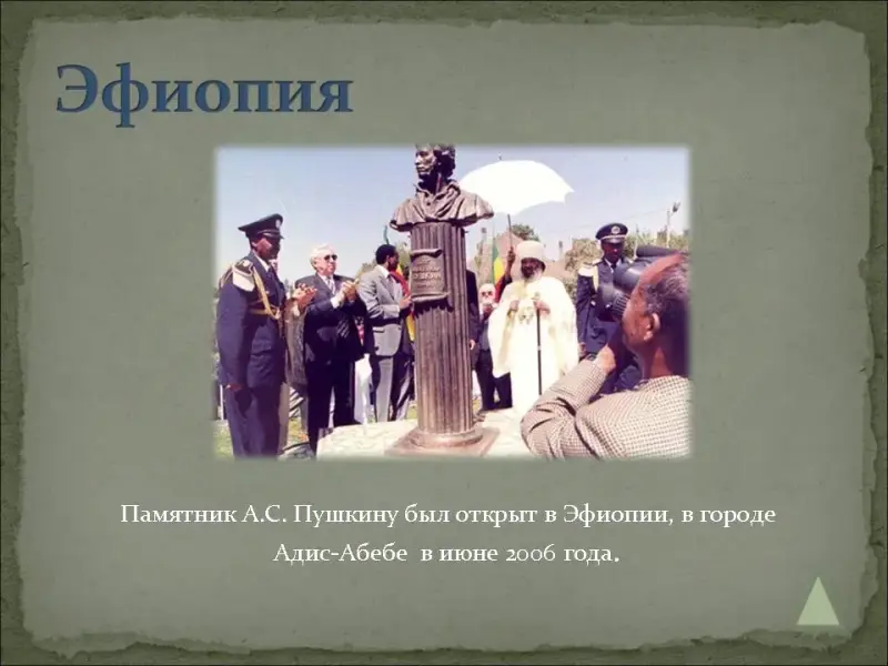 странах, и один из памятников был открыт в 2006 году в Эфиопии. (Ссылка 8)