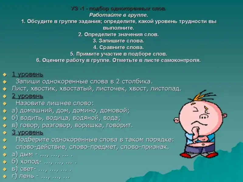1. Обсудите в группе задания; определите, какой уровень трудности вы выполните.