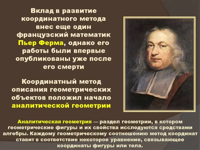 С целью развития у учащихся представления о геометрии, как многогранной науке, мы сопроводили слайд № 4 определением аналитической геометрии.