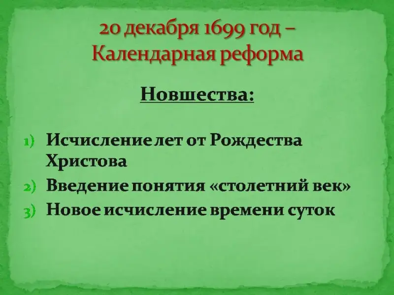 Учитель истории: Итак, какие новшества вводит календарная реформа?