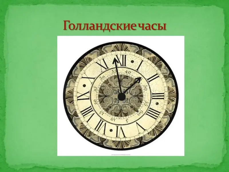 Еще одно введение календарной реформы - новое исчисление времени суток. Слайд 5. Много раз в день мы смотрим на часы, чтобы определить, который час. Петр ввел в применение на Руси голландские часы, на циферблате которых 12 делений и две подвижные стрелки - часовая и минутная. В допетровское время на Руси пользовались часами, на циферблате которых было 17 делений, одна стрелка, после восхода солнца считали дневные часы, после захода - ночные. В этом суть календарной реформы.
