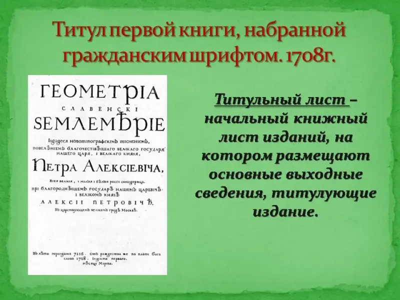 Учитель истории: календари были предназначены для широкого круга читателей. В связи с этим необходимо рассмотреть такой важный аспект культурной реформы, как введение нового гражданского шрифта.