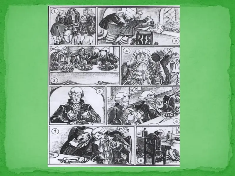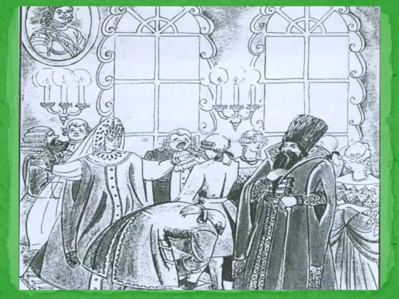 Учитель истории: далее Петр излагал в указе основные принципы и особенности проведения Ассамблеи, которые вы сможете определить самостоятельно, просмотрев отрывок из художественного фильма. Внимание на экран. Слайд 22 (Видеоролики слайдов №22 и №24 можно получить у авторов статьи). (европейское платье, прически, парики, танцы, угощение, присутствие женщин, веселье, игры).