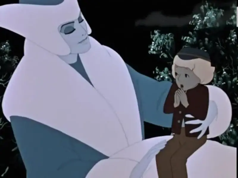 Снежная королева. Кай, я вижу тебе нравятся мои снежинки! Поехали со мной, я покажу тебе ещё много снежинок и других красивых вещей, а ещё дам тебе мороженое.