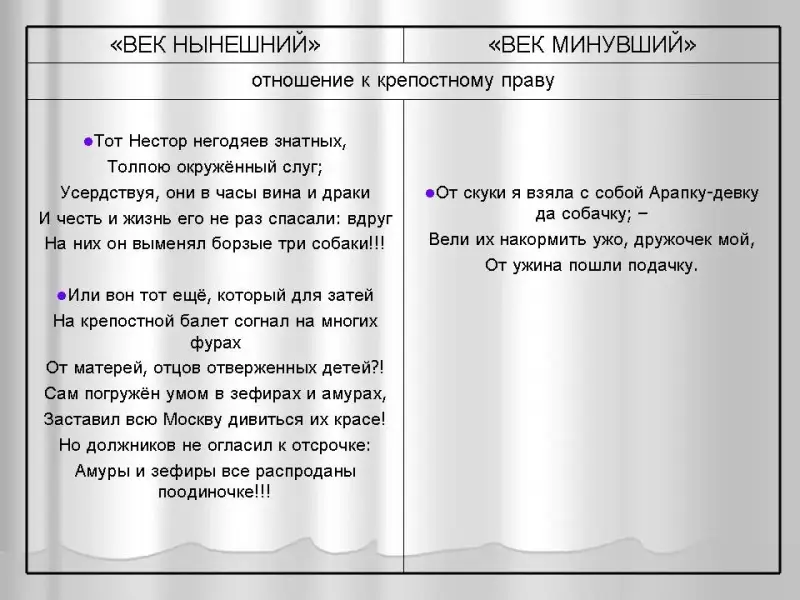 - Выберите цитаты из текста, иллюстрирующие пункты таблицы. Сделайте вывод о взглядах "века нынешнего" и "века минувшего".