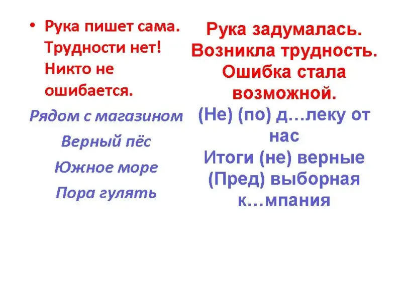 2. Рука задумалась. Возникла трудность. Ошибка стала возможной.