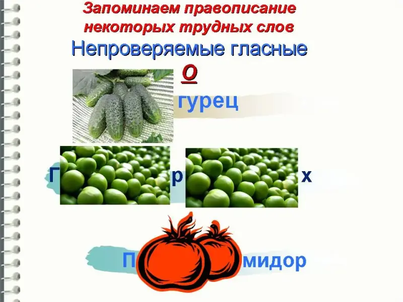 1. Непроверяемые (безударные) гласные. Самая простая картинка помогает учащимся 5 классов запомнить правописание некоторых словарных слов с безударными гласными о.