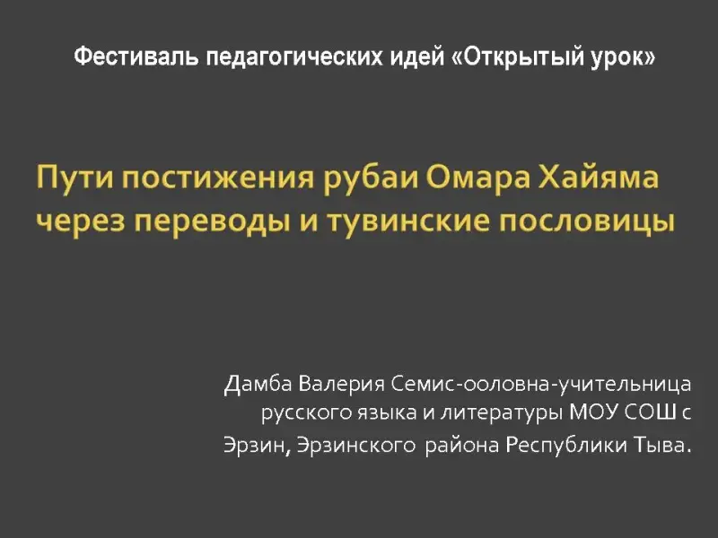 "Созвучие тем и философских мотивов в рубаи О.Хайяма и в пословицах тувинского народа".