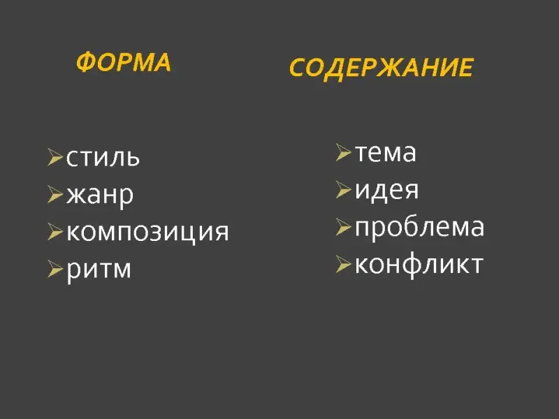 3) Учащиеся по ходу работы определяют, что входит в форму художественного произведения, а что - в содержание.