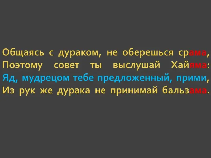 • Особенно схожи с рубаи пословицы, в которых содержатся нравственные кодексы: