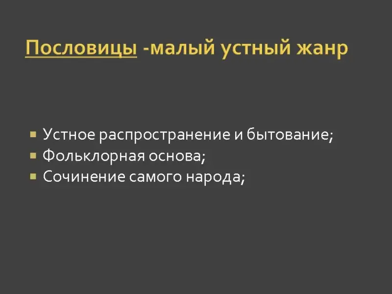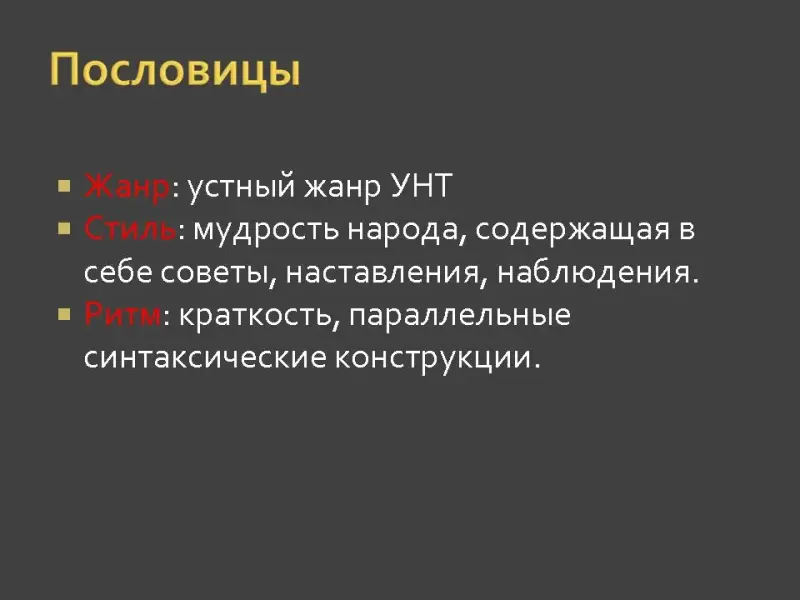 Стиль: мудрость народа, содержащая в себе советы, наставления, наблюдения
