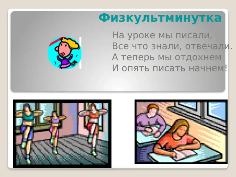 V. Физкультминутка - 2 мин. (слайд 14)