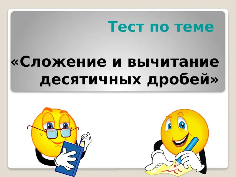 Здравствуйте, ребята. Садитесь, пожалуйста. Сегодня у нас заключительный урок по теме "Сложение и вычитание десятичных дробей" (слайд 1)