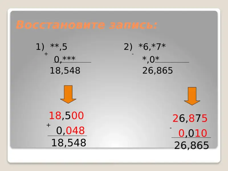 Как складывают и вычитают десятичные дроби? (слайд 7,8)