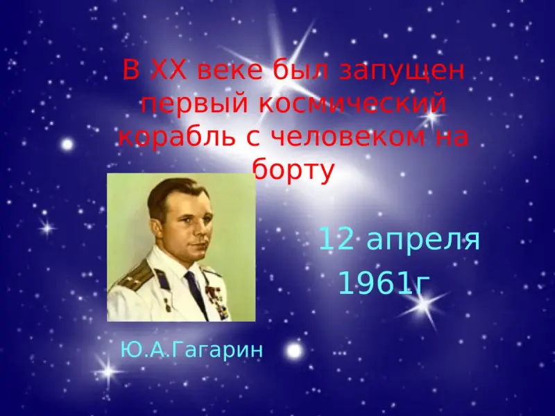 А в ХХ веке был запущен первый космический корабль с человеком на борту.