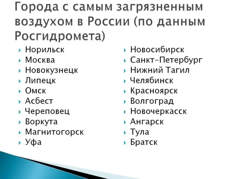 Города с самым загрязненным воздухом в России (по данным Росгидромета)