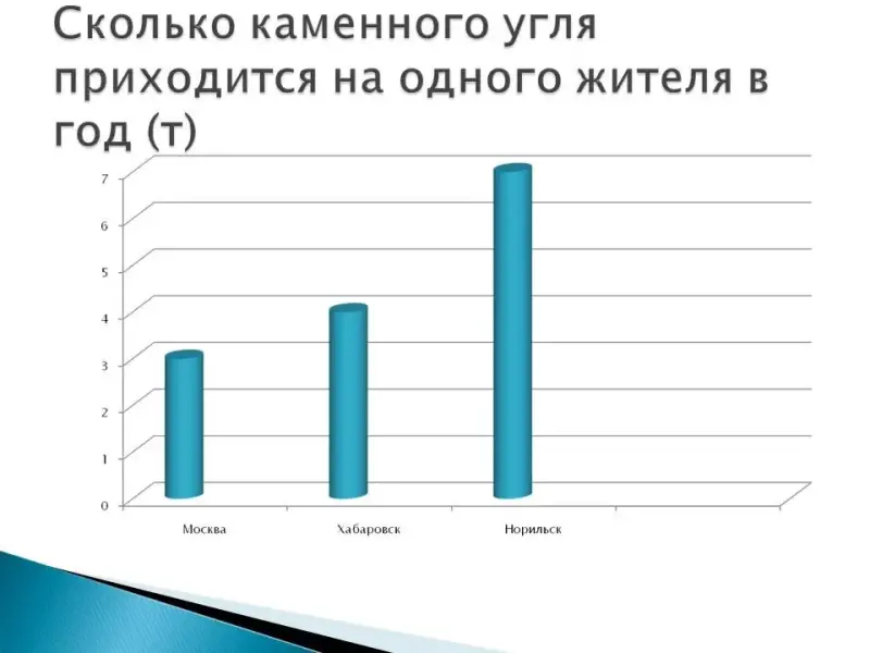 Москве 3 тонны каменного угля, в Хабаровске - 4, в Норильске - 7.