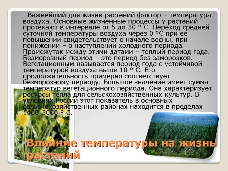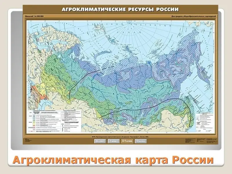 Запишите в тетрадь: агроклиматические ресурсы - это сумма активных температур (сумма средних суточных температур за период, когда, по многолетним данным, средняя суточная температура превышает + 100С), необходимых для выращивания определенных растений.