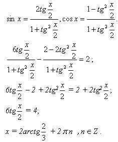 Решение уравнения 3 sin x - 2 cos х = 2, используя «универсальную подстановку».
