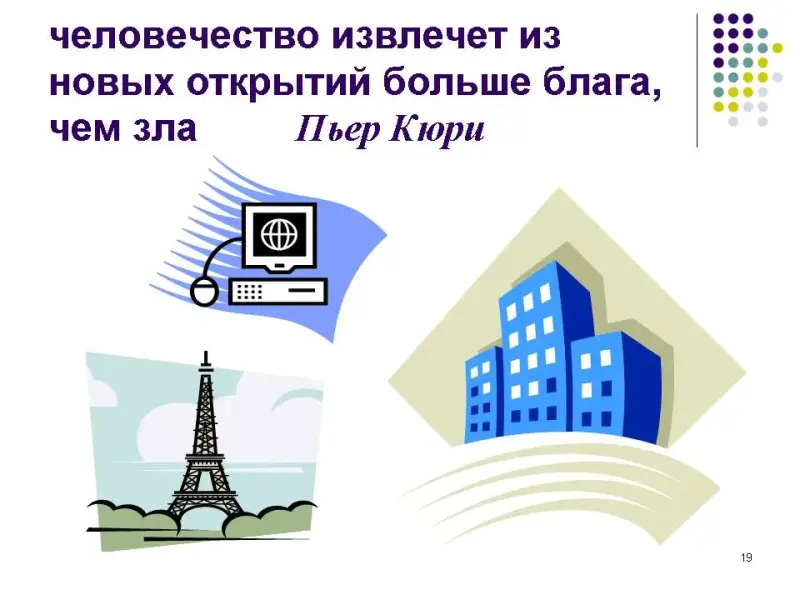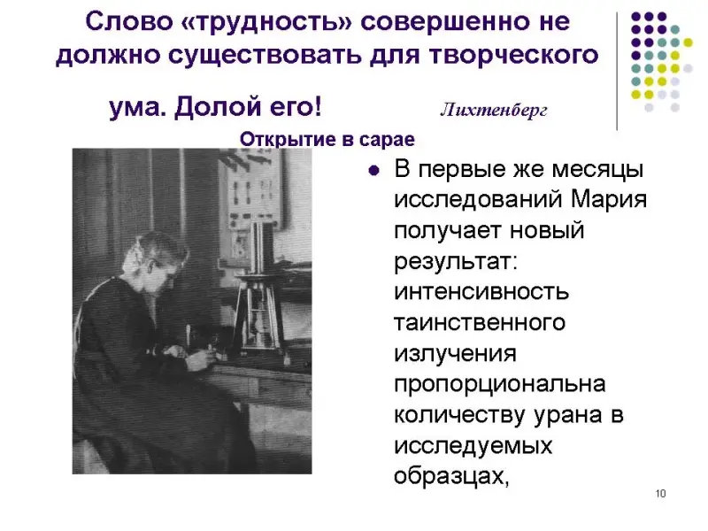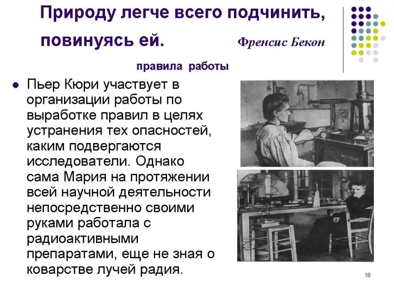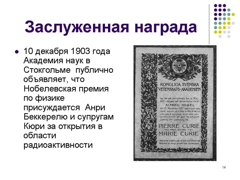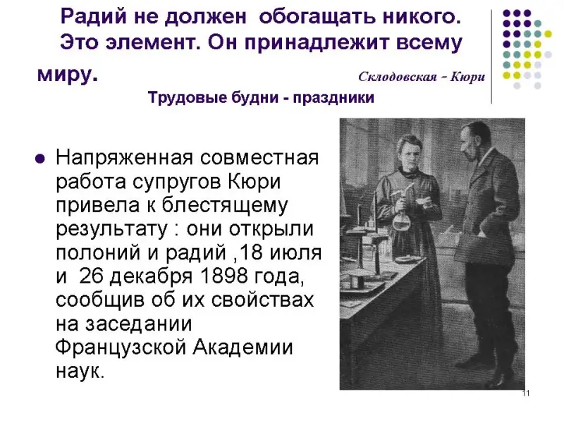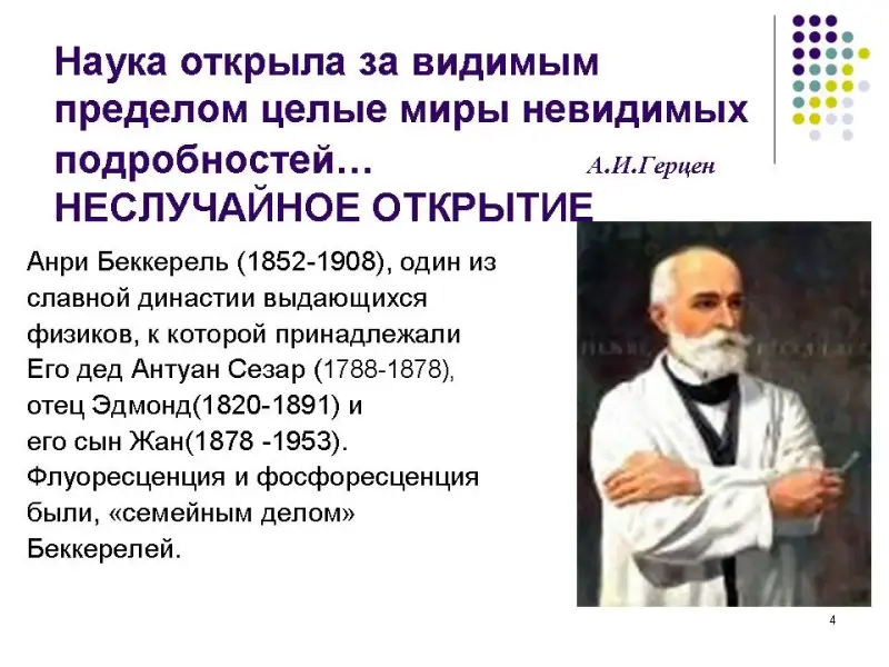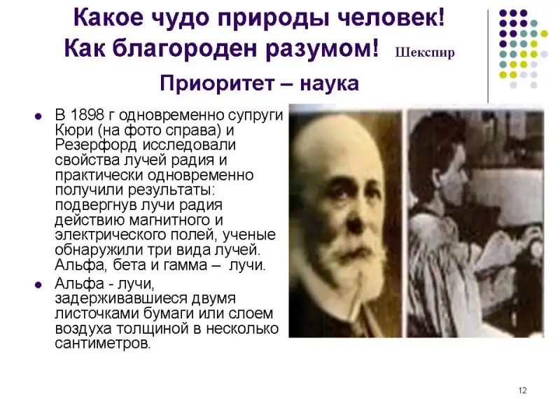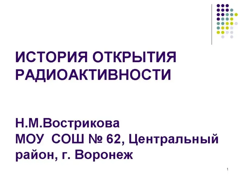 - Учащиеся заранее не делятся на группы. В начале проведения диспута просматривается презентация (Приложение 1, История открытия радиоактивности), которую предлагает учитель, обращая внимание на неоднозначность предлагаемого материала.