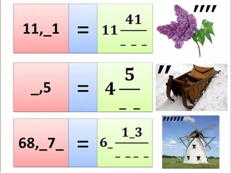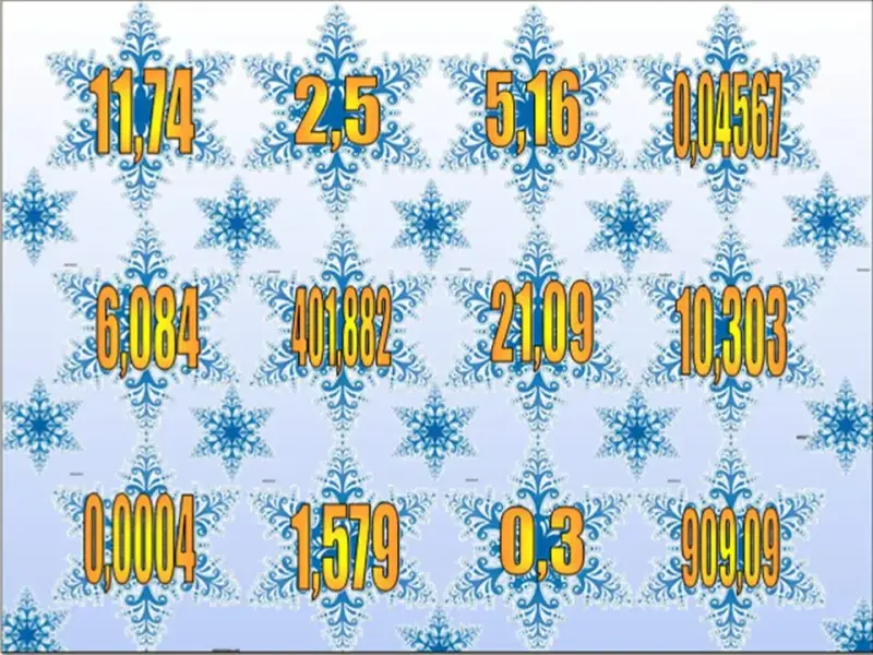 Задание: прочитайте дроби (за правильное чтение школьники получают «снежные комочки»)