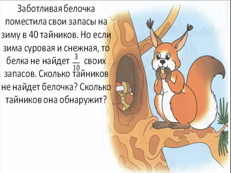 Сколько тайников не найдет белочка? Ответ: (40:10х3 =12 (т))