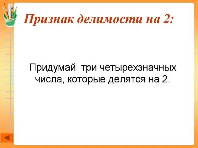 - Придумай три четырехзначных числа, которые делятся на 2.