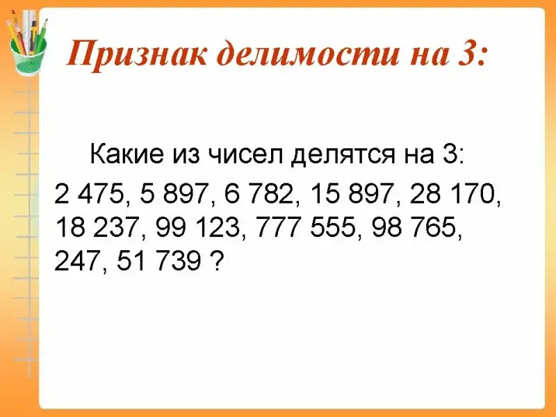 В каждом блоке сначала формулируется признак делимости, приводится пример. Затем дается несколько заданий на данный признак. Например: