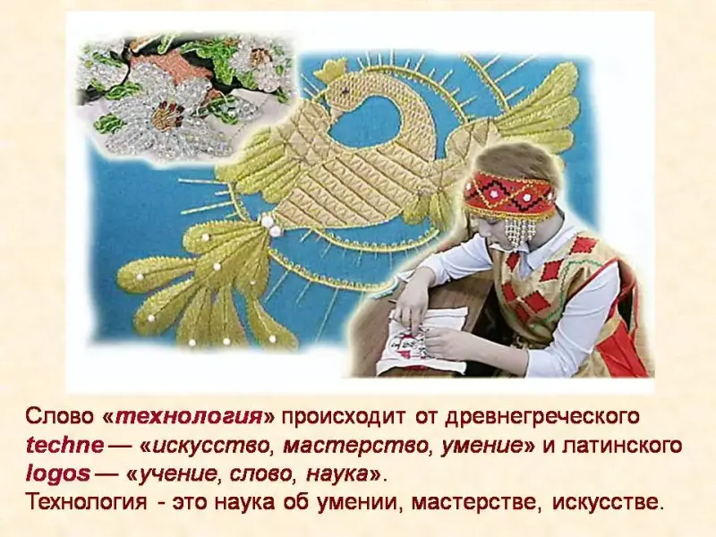 Слайд 4 Слово «Технология» происходит от древнегреческого tehne -«искусство», «мастерство», «умение» и logos - «учение», «наука». Технология - это наука об умении,мастерстве, искусстве.
