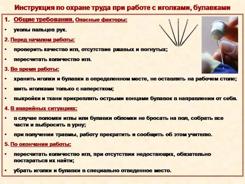 Слайд 20 Инструктаж по охране труда при работе с иголками, булавками.