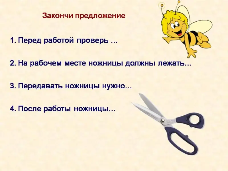 Слайд 22 Инструктаж по охране труда при работе с ножницами.