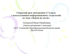 Учитель называет вид задачи (задачи на части) и предлагает учащимся записать тему урока: «Задачи на части».