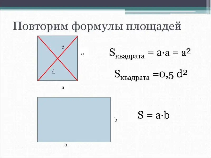 - Закрепление и обобщение теоретического материала по теме «Площадь».