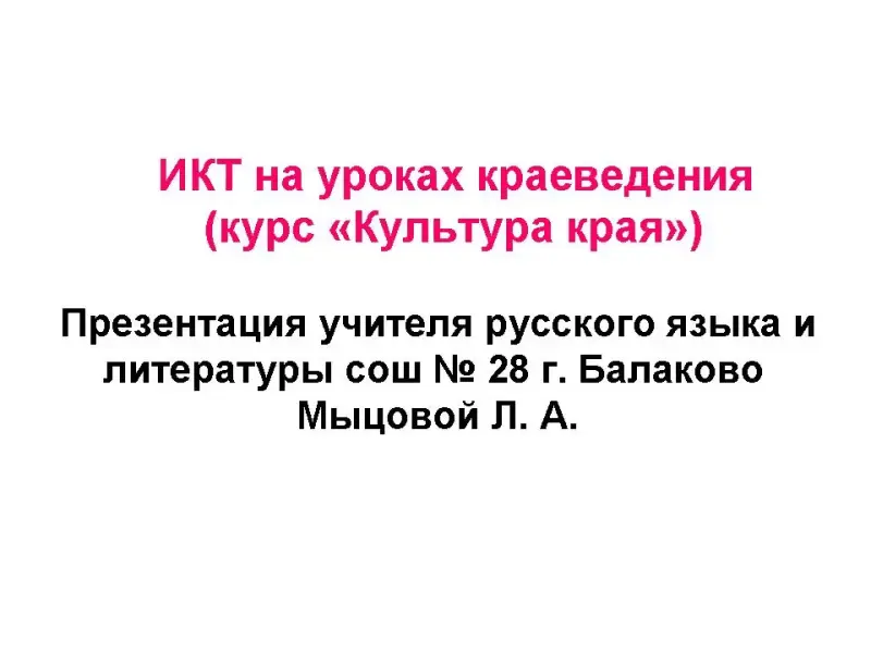 Возможности ИКТ на уроках краеведения (культура края). 8-й класс
