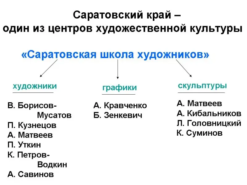 Для закрепления изученного материала на уроках культуры края я предлагаю ученикам виртуальные викторины, причём их под силу составлять и учащимся. (Слайды № 53 - 55) Это, на мой взгляд, активизирует внимание учащихся, развивает память и творческое воображение. Интересна и такая форма работы, когда ученики создают репродукции картин, работая с их фрагментами как с пазлами. При изучении темы «Мастера живописи и скульптуры» ученики «писали» «живые картины», то есть передавали настроение картин саратовских художников позами и жестами (слайды № 56 - 59). И это вряд ли было бы это возможно, если бы не использование ИКТ.