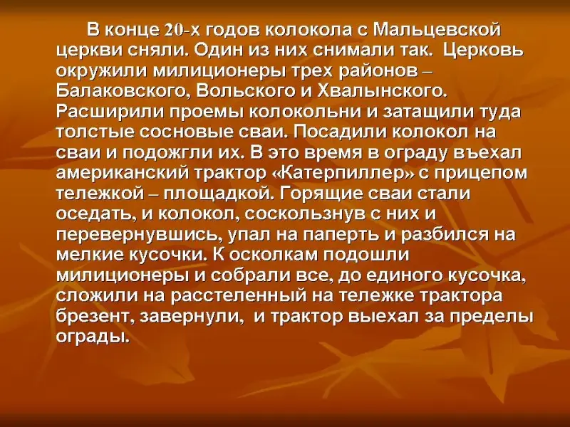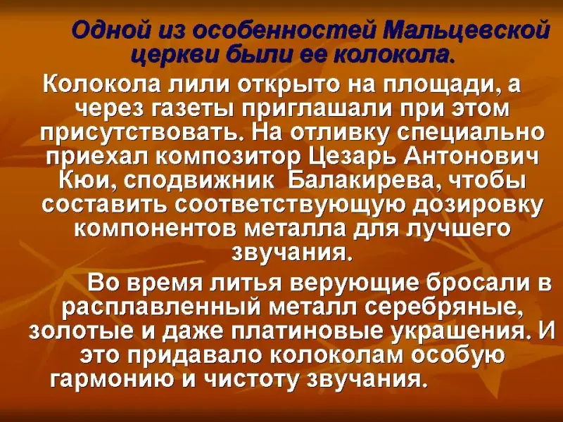 Прежде всего, это экскурсии уроки в форме виртуальных прогулок по улицам Саратова и Балаково. Благодаря таким экскурсиям учащиеся познакомились с архитектурными комплексами и ансамблями (слайды №4 -6 ), усадьбами и особняками (слайды № 7- 8), памятниками культовой и общественной архитектуры (слайды № 9 -15), памятниками садово-паркового искусства. Особый интерес у ребят вызвали уроки - репортажи, на которых речь шла об утраченных архитектурных памятниках. (Слайды № 16 - 19) Также школьники познакомились с жизнью и деятельностью известных саратовских архитекторов. На таких уроках - презентациях ребята рассказывали об интересных фактах биографии людей, которые внесли заметный вклад в архитектурный облик городов нашего края; знакомили с памятниками архитектуры, созданными саратовскими архитекторами. (Слайды № 20 - 23) В конце изучения данного блока тем ученикам было предложено, во-первых, написать сочинение. Вот отрывок из одной работы. «Когда я смотрю на постройки нашего города, то вижу один холодный камень и железо. Я понимаю, что так здания построены для удобства человека. Я понимаю также, что удобство не должно быть вычурным, напоказ: «Смотрите, я круче!» И строят люди, не щадя ничего: ни окружающей природы, ни человека. Скоро места для настоящей, а не мёртвой и каменной, красоты не останется. Мне больше нравится живая красота: леса, поля, реки, а не эти мёртвые «памятники». Кульгавеня Катя.» А вот пример другого сочинения: «Занимаясь на уроках краеведения, я узнал много нового об архитектуре моего края. Раньше, когда я шёл по улицам , не замечал, насколько интересны здания в нашем городе. Я видел только коробки. А теперь, когда прохожу мимо домов на улице Коммунистической, то хочу остановиться и всё подробно рассмотреть. Оказывается, здесь нет ни одного похожего здания, каждый уникален. У меня есть теперь одна мечта: пусть все здания нашего города будут памятниками архитектуры, возможно, тогда и люди будут лучше. Флюстунов Илья». Во-вторых, ребята представили свои презентации , в которых рассказали о наиболее интересных с их точки зрения зданиях (например, Троицком собор в Балакове, особняках Катенёва, Шмидта в Саратове, усадьбе Мальцевых в Балакове и др.)