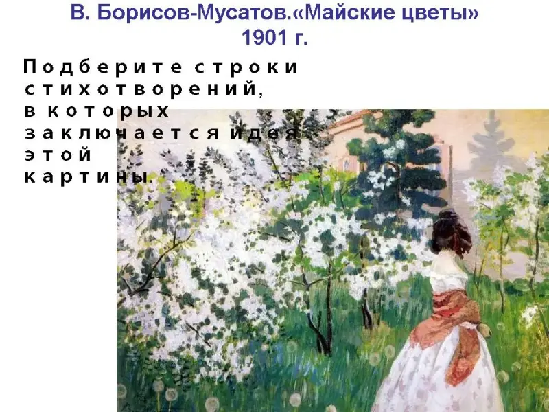 Ребята посмотрели некоторые картины саратовских художников, незнакомых на тот момент широкой публике (слайд № 25), и, представив себя в роли репортёров «Саратовского листка», написали репортажи о посещении выставки. Вот пример такого репортажа: «Сегодня я посетил выставку «Алая роза». То, что я там увидел, меня нисколько не потрясло. Большинство работ похожи на детские рисунки, на которых изображены непонятные фигуры и предметы. На картине П. Уткина «Лунное» изображено то, что, возможно, видит сам автор, но не зритель. А на его же картине «Сумерки» я увидел только три пятна: синий, зелёный и тёмно-зелёный. Одним словом, в зале я не было ни одного человека, который не зевнул бы, проходя мимо этих картин. Все силы художников были потрачены зря. Репортёр газеты «Саратовский листок» Флюстунов Илья.» Но вот пример другого сочинения: «Если вы настроены критически по отношению символистов или не понимаете их картин, то, конечно, лучше не приходить на эту выставку. Но если вы ценитель прекрасного, то вас не оставят равнодушным картины Судейкина и Уткина. А полотно Феофилактова заставит задуматься над смыслом нашего существования. Кульгавеня Екатерина».