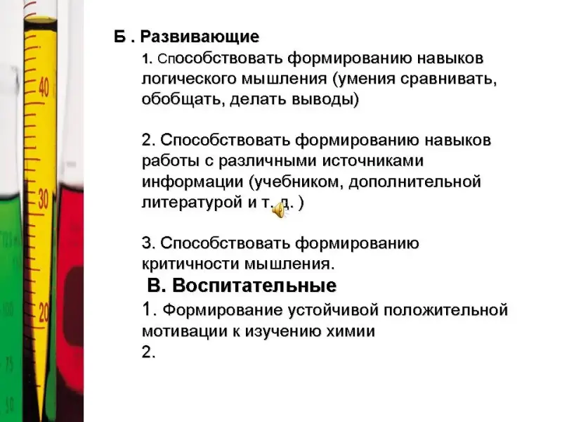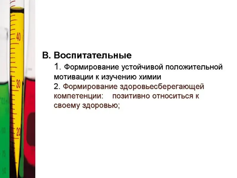 - Формирование устойчивой положительной мотивации к изучению химии