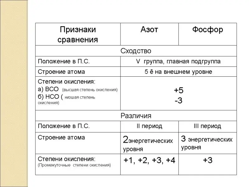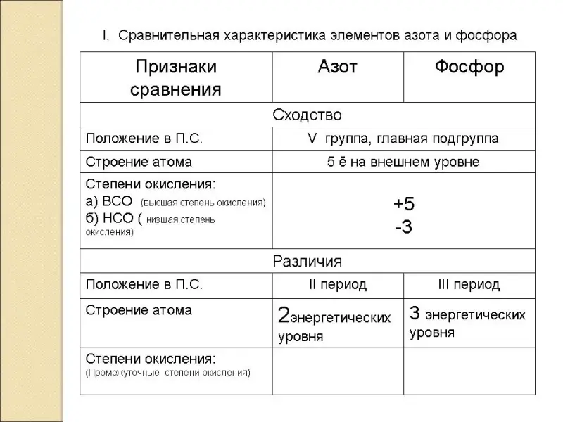 1. Сравнительная характеристика элементов азота и фосфора