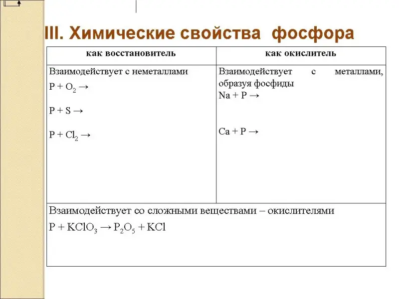 3. Химические свойства фосфора