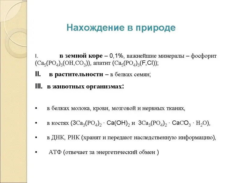 Содержание фосфора в организме человека составляет приблизительно 1% от массы тела.