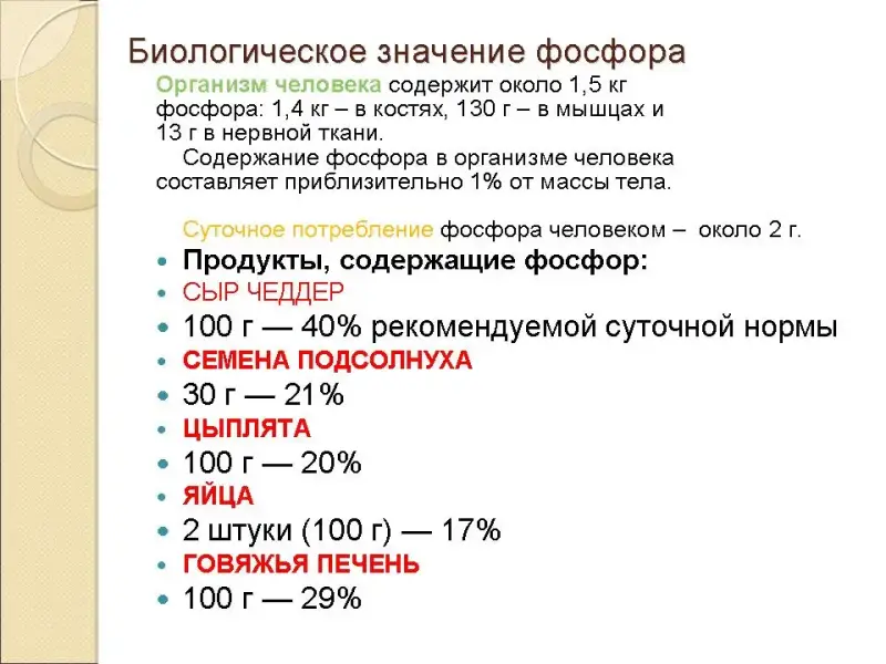 Продукты, содержащие фосфор: