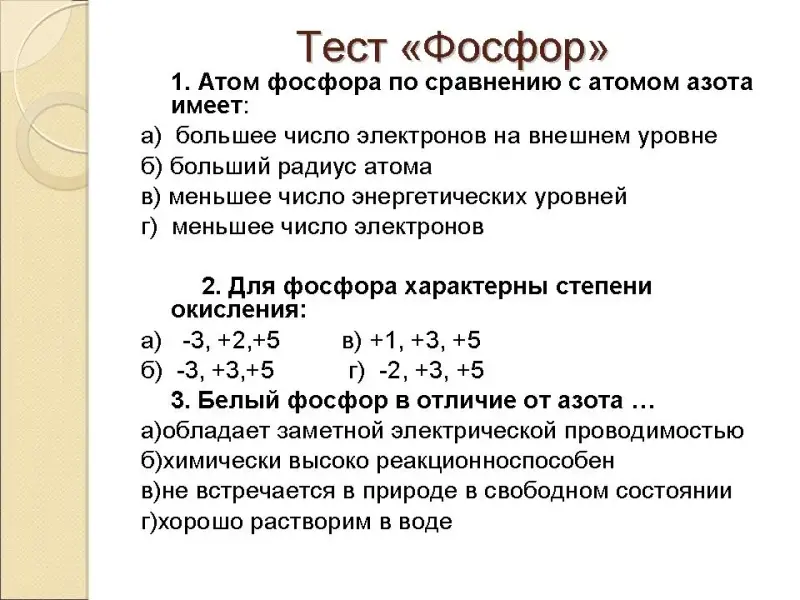 Тест «Фосфор»