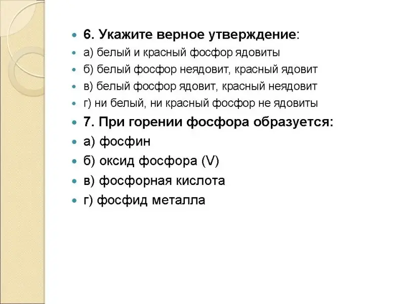 г) ни белый, ни красный фосфор не ядовиты -