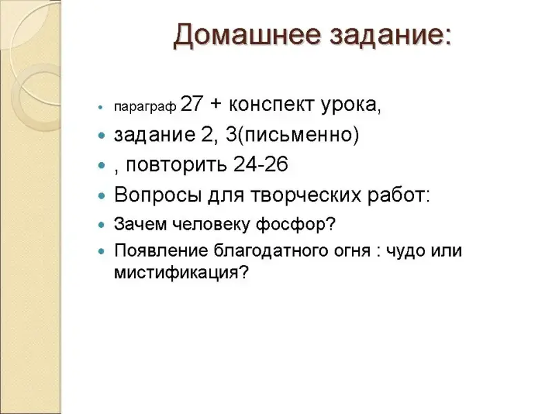 параграф 27 + конспект урока, задание 2, 3(письменно), повторить 24-26