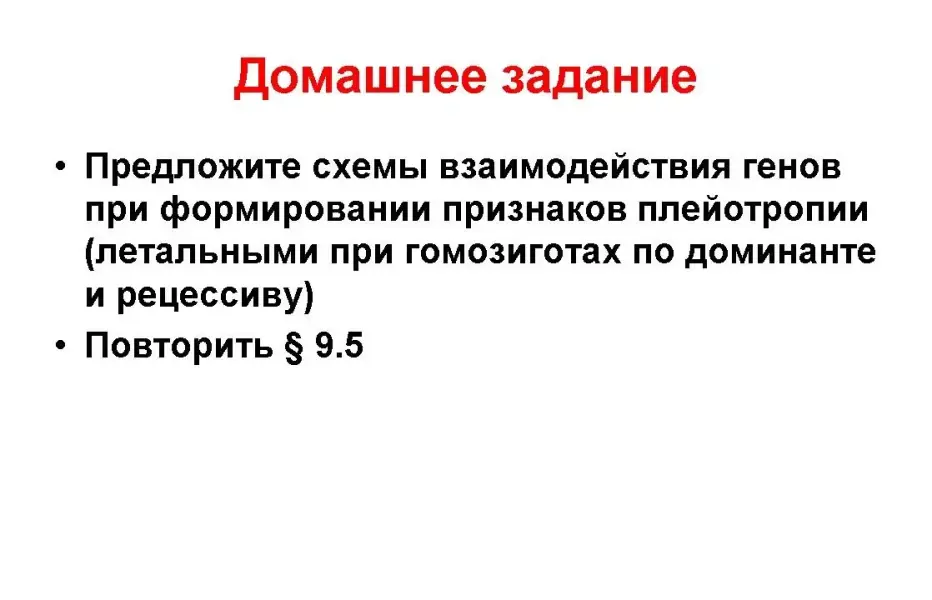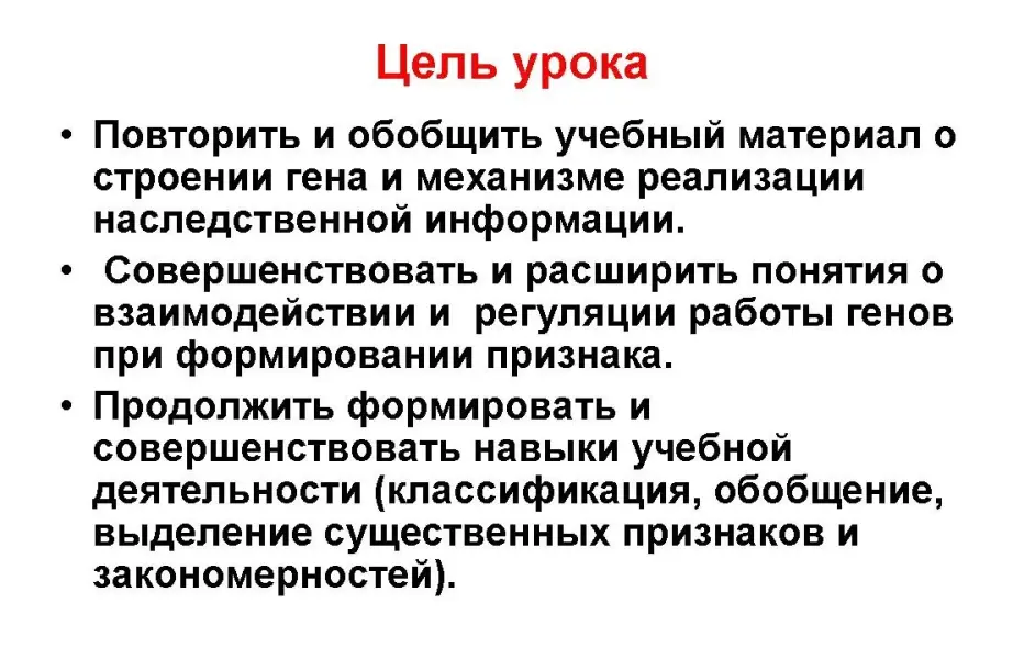 2. Совершенствовать и расширить понятия о взаимодействии и регуляции работы генов при формировании признака