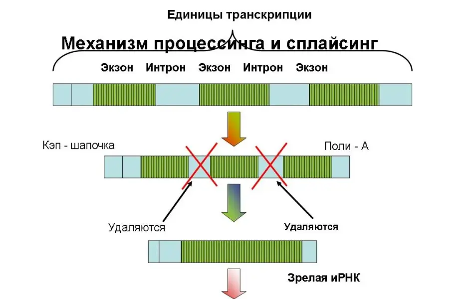 2. Значения транскрипции (передача наследственной информации) процессинга (подготовка РНК к трансляции)