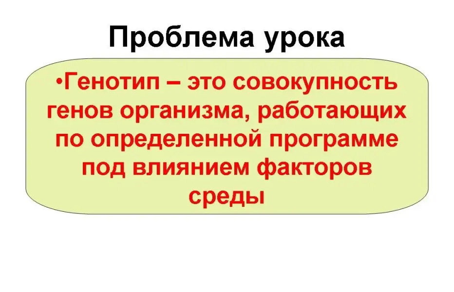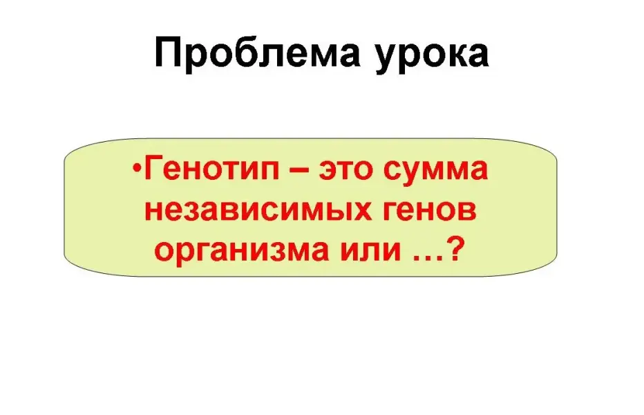 Таким образом, основную проблему урока озвучим так: Генотип - это сумма независимых генов организма или …?